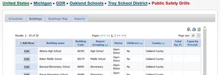 An PSD Schedule must be linked to a Building. The Munetrix PSD Manager has a list of all buildings included in the State’s Entity Master. There are times however when you may need to add additional buildings or rename an existing building. The “Add or Edit Buildings” link will open a data grid displaying all the buildings linked to your district or PSA.