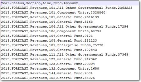 Figure 96: Sample F65 file from the State of Michigan's MS Excel template