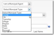 The items in the Type of Local Unit drop down will vary depending on your selection in the previous User Type drop down. To continue the registration process select the type of local unit you are representing.